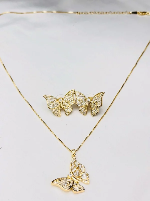 Em até 3x de R$ 59,90 sem juros Conjunto colar de borboleta + brinco de borboleta